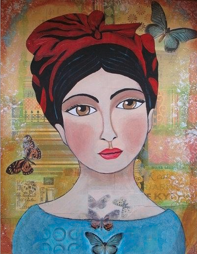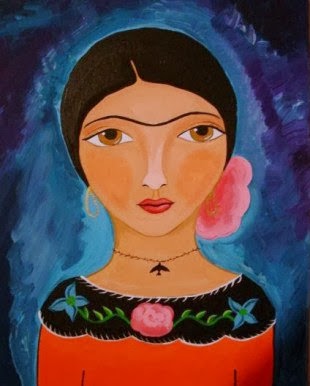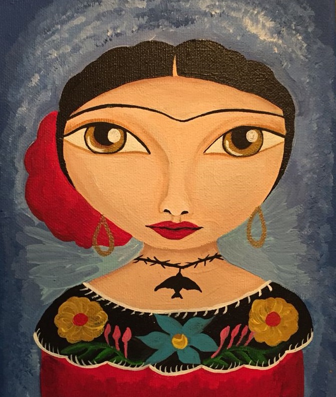 Frida Kahlo Folk Art 12" x 12" Original Canvas Painting for SALE $29.99