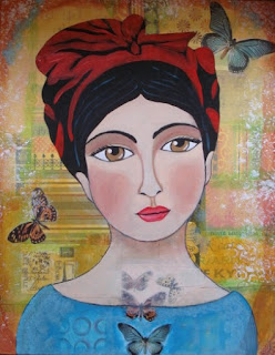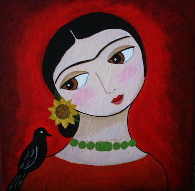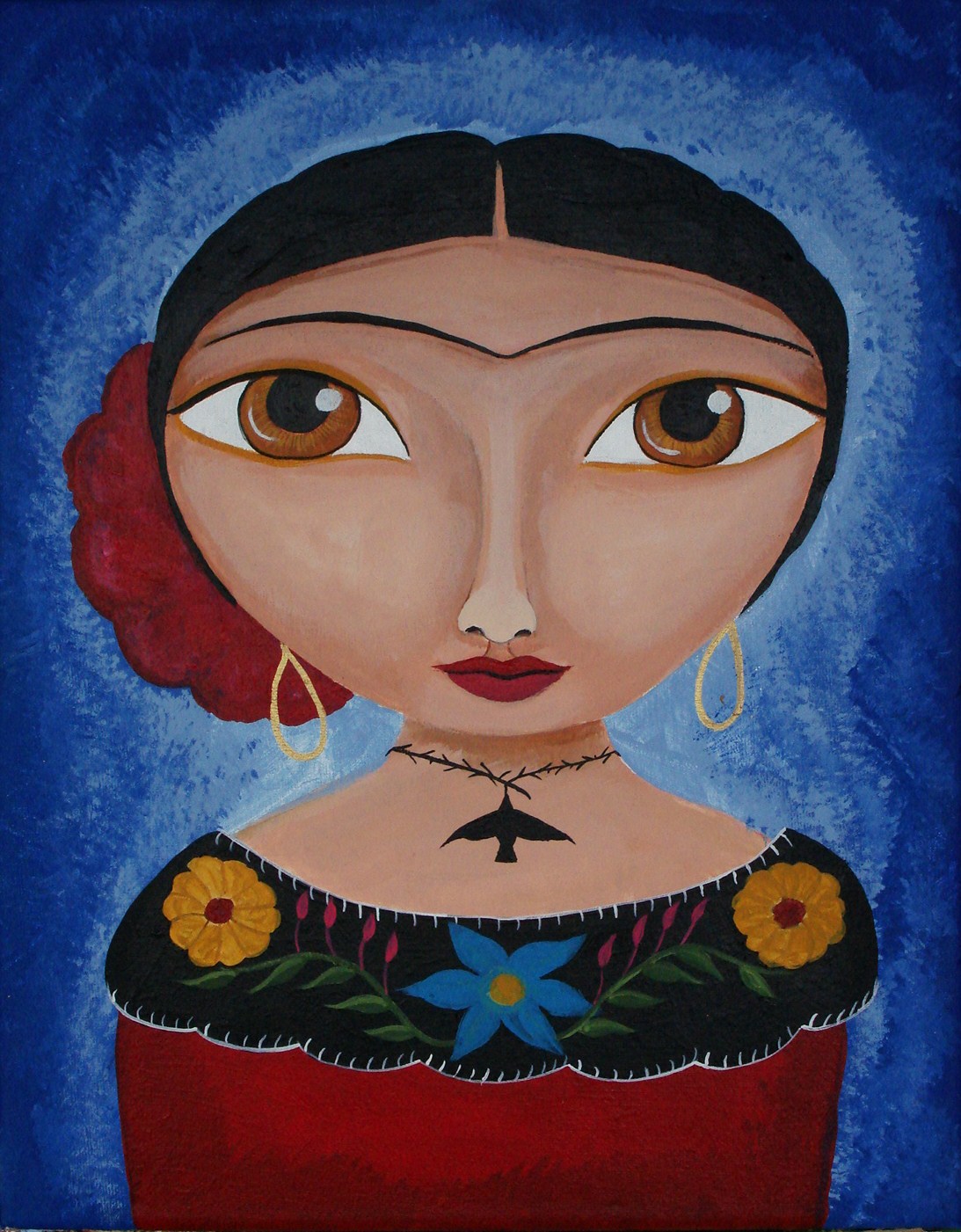 Erika Ashley Folk Art: This canvas painting available for sale 11"x14" x ...: Mixed media acrylic painting on canvas Frida Kahlo Folk Art